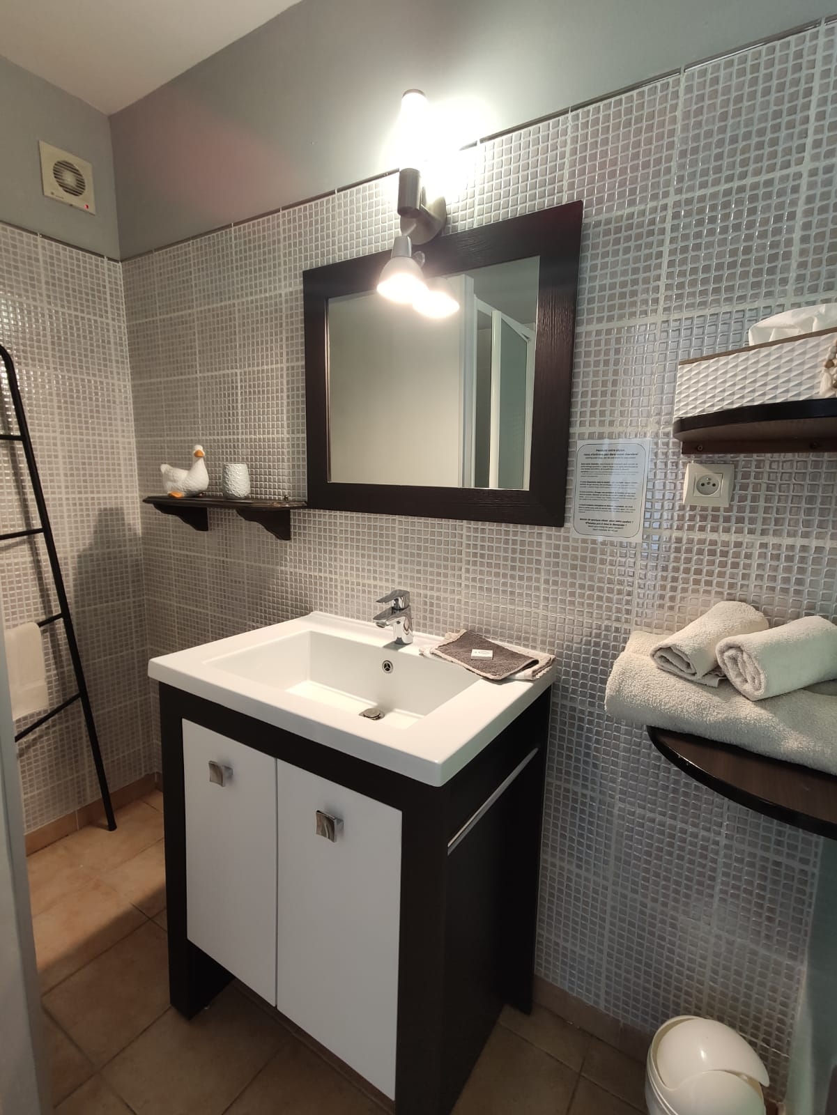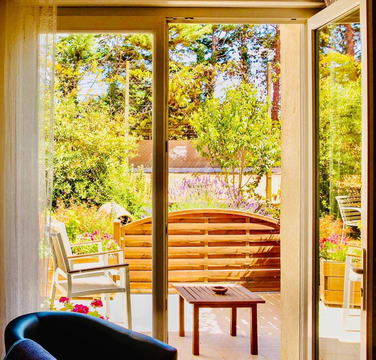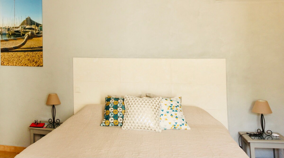 Chambre spacieuse (22 m² + terrasse) située au rez de chaussée, vue sur jardin. Equipées d'un petit réfrigérateur, d'un placard-penderie, d'une télévision à écran plat, d'une climatisation individuelle mixte hiver/été. Salle d'eau privée avec douche et meuble-lavabo, toilettes séparées. Entrée indépendante et kitchenette commune et buanderie à disposition. Piscine commune et jardin, piste de pétanque et parking privé.