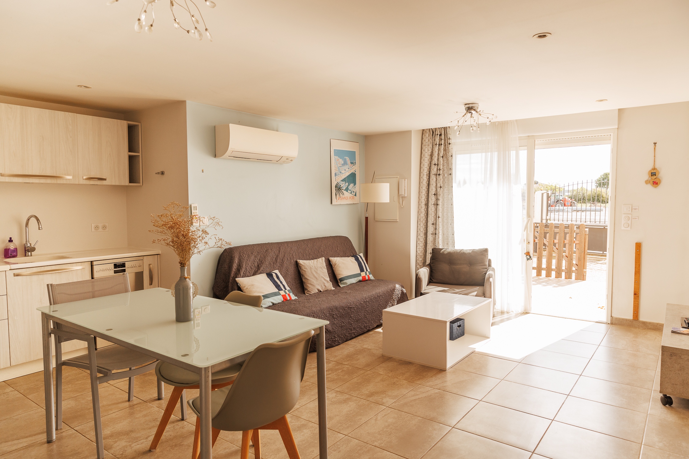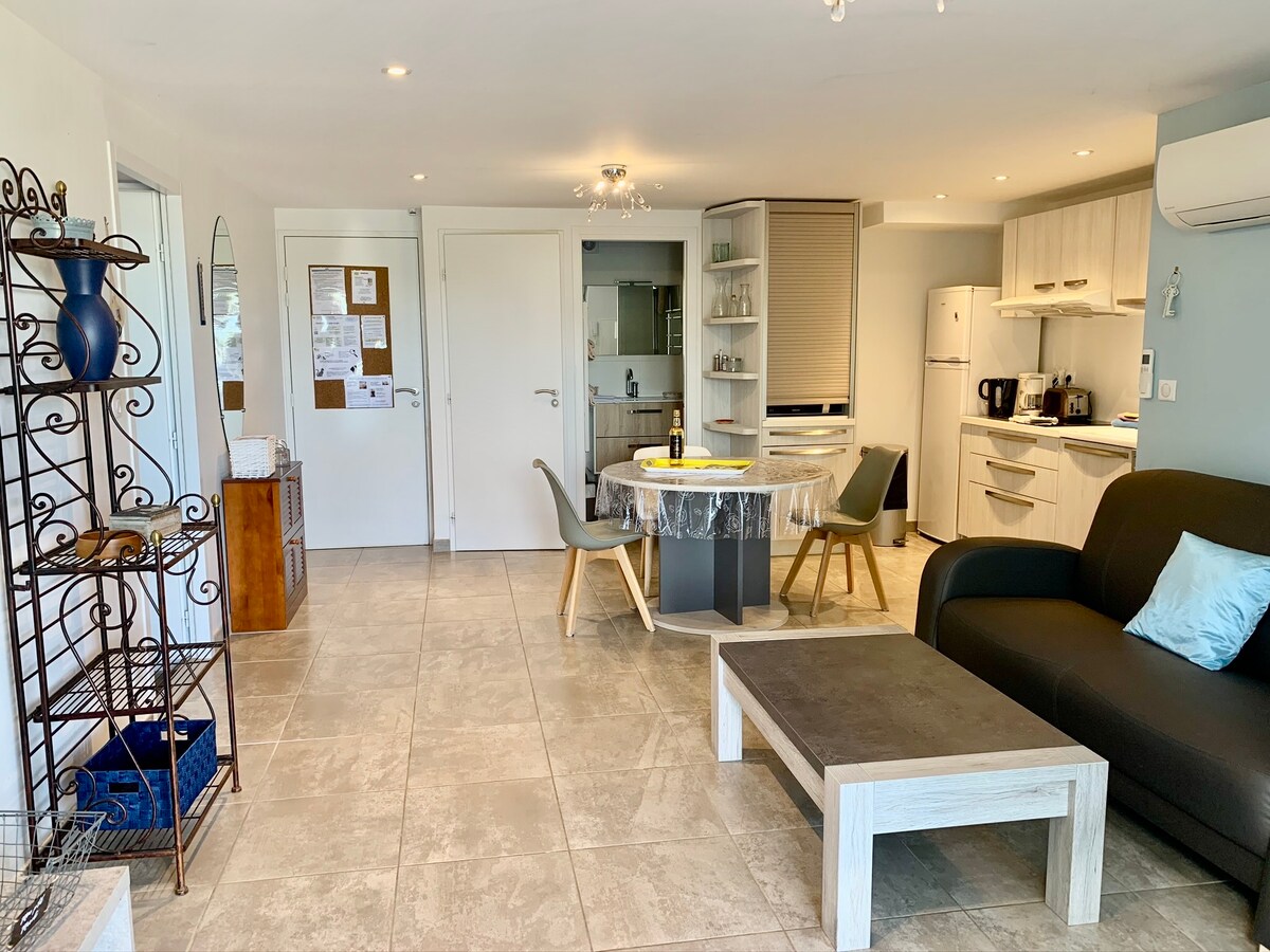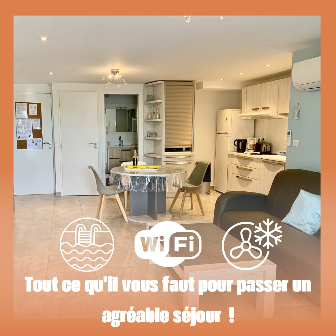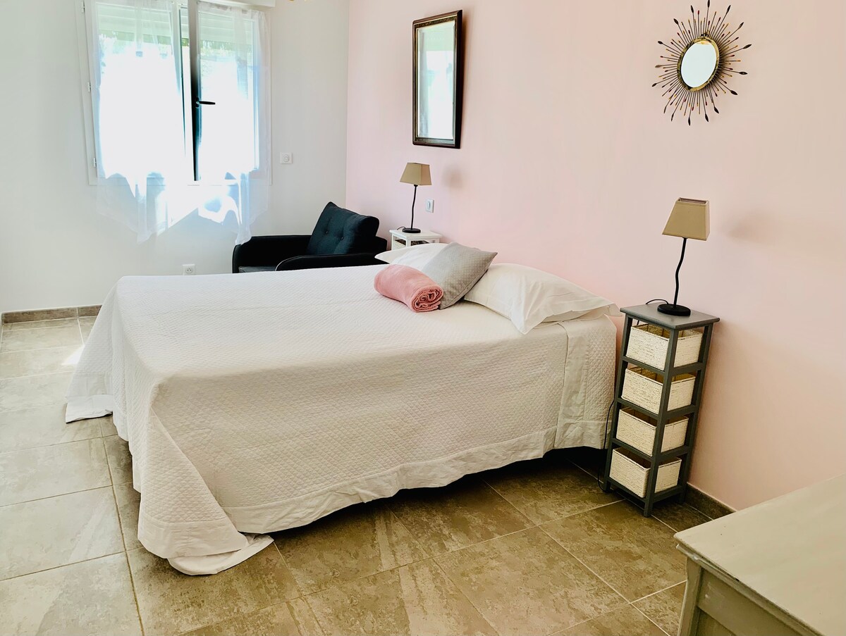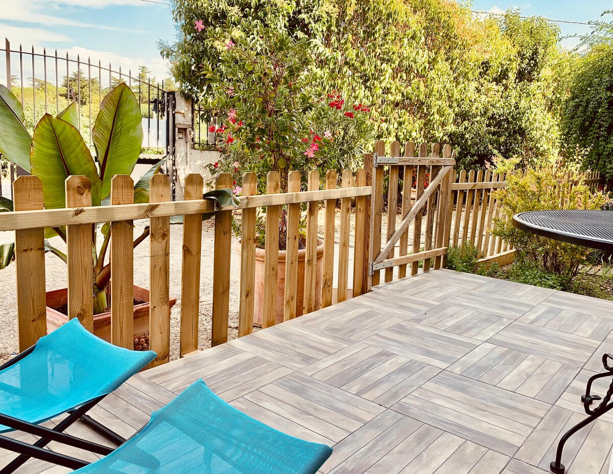 Venez profiter du Gîte côté Vigne (45 m2), situé au rez de chaussée du Mas Saint Ange. Ce gîte est tout équipé (meublé de tourisme classé 3 étoiles). Il dispose d'une terrasse fermée, climatisation individuelle mixte hiver/été, avec télécommande.