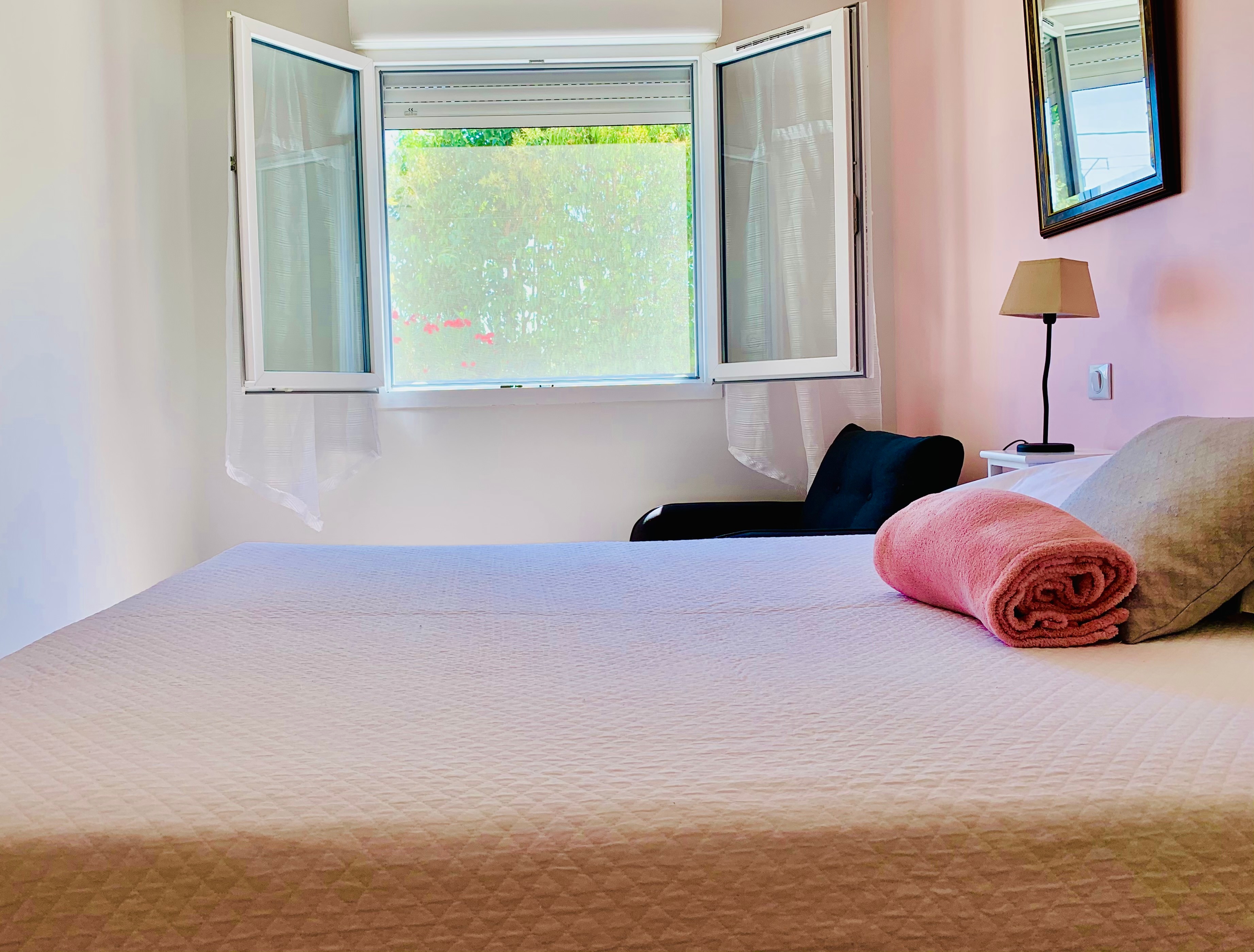 Piscine partagée dans le jardin du Mas. Parking fermé, portail avec télécommande. Accès local à une machine à laver partagée.