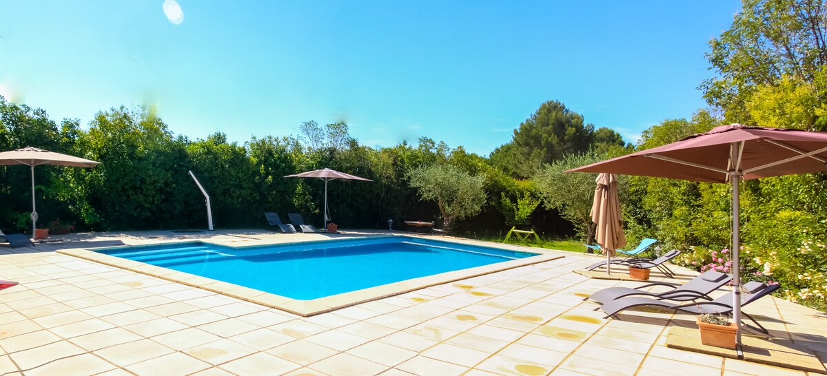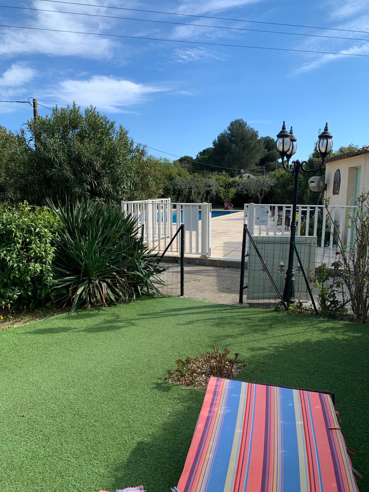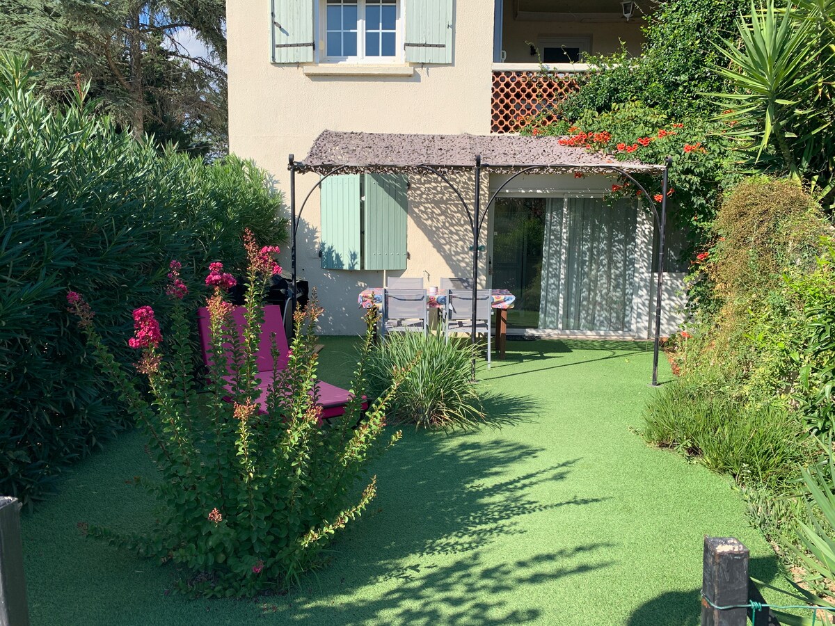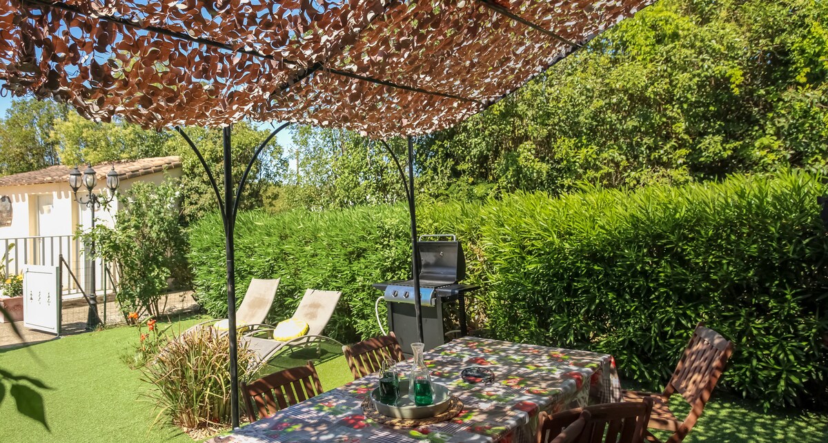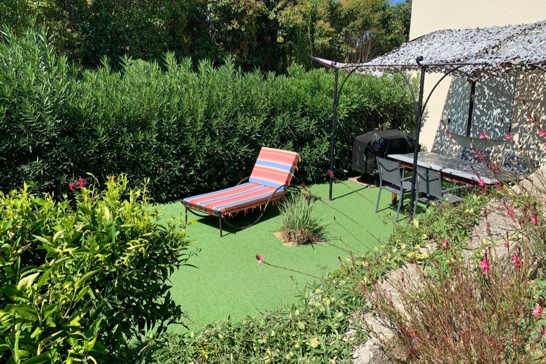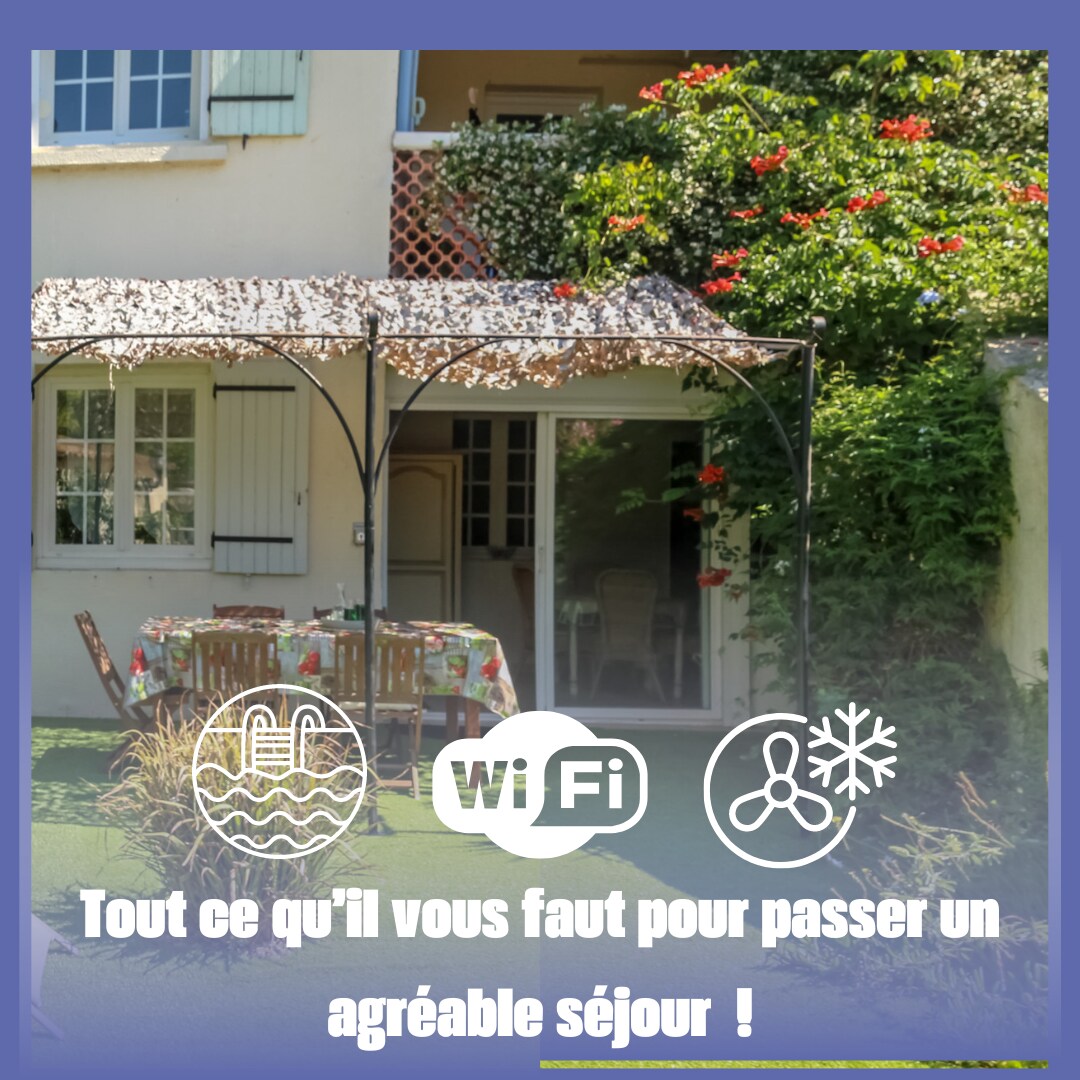 Vous apprécierez la terrasse-jardinet et la pergola face à la piscine.